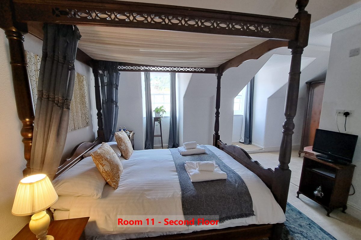 Our hotel is full of character – with log fires going in the colder months, oak beam bars, creaky floors, and antique antlers on the walls.  We are situated in the heart of Dulverton in Exmoor National Park. This lovely country town has a lot to offer to its visitors. There are several traditional tea rooms, small shops and also a museum and the Exmoor National Park Visitor Centre for you to explore. A farmers’ market is held during summer on every last Saturday of the month.  In the evening you can dine at one of the great restaurants in town, at a local pub and of course at our own restaurant. We offer home-cooked meals using local produce. Since we are running the kitchen by ourselves and everything is freshly prepared, reservations are highly appreciated. The Lion Hotel is an ideal base to explore stunning Exmoor, lots of Devon and Exeter. The historic Tarr Steps are close by as well as the Exmoor Pony Centre and Wimbleball Lake. Trips within a reasonable distance by car would include Lynton, Lynmouth, Porlock or Minehead.  The Lion Hotel has 13 unique bedrooms, all of them are en-suite and furnished in the style of the hotel with traditional and antique furniture and comfortable beds.